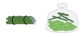 - 草・木・剪定ごみは直径10cm以下、長さ50cm以下に切り、透明又は半透明の袋に入れるか、両端を縛ってください。